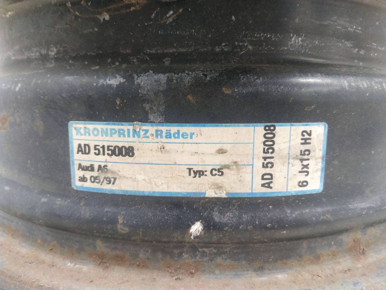 Штампованный диск R15x6 5x112 R15, ширина обода: 6, PCD 5x112 мм, ET 45 мм Volkswagen Passat B5 1997 1.8 л., AEB, бензин, МКПП синий, универсал, передний привод, левый руль