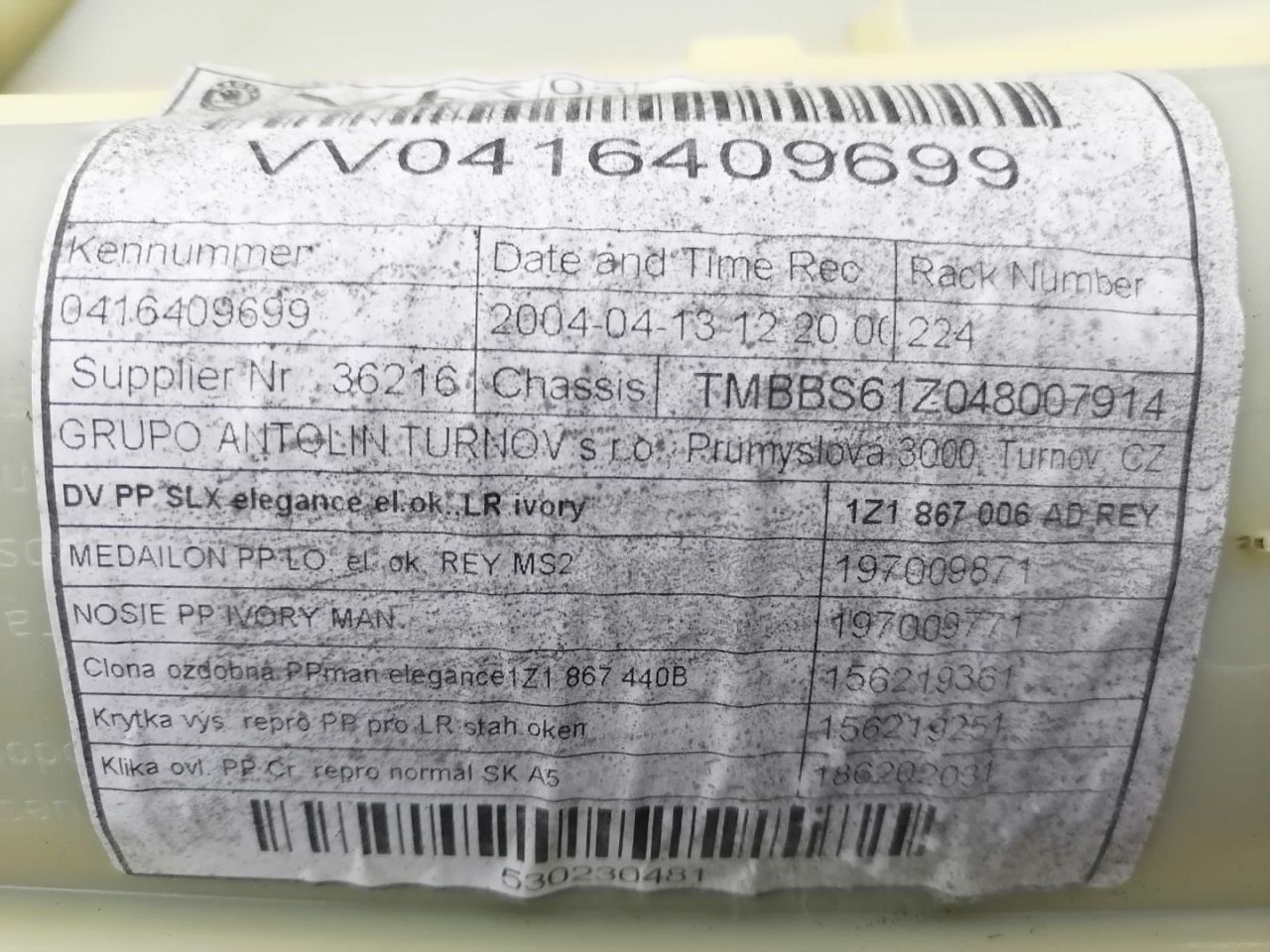 Номер запчасти | 1Z1867006AD, 0416409699 |