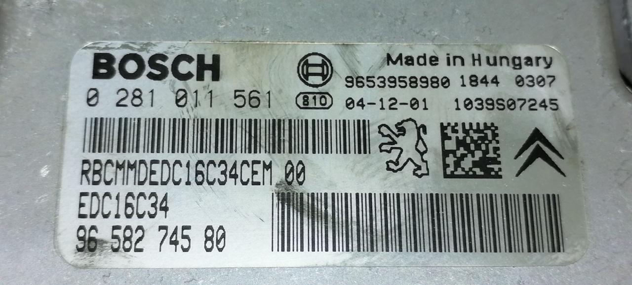 Номер запчасти | BOSCH, 0281011561, 9658274580, 9653958980, EDC16C34, 1039S07245 |